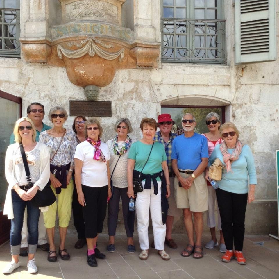 Passengers line up in the sun outside Auxerre's Place Saint Nicolas.