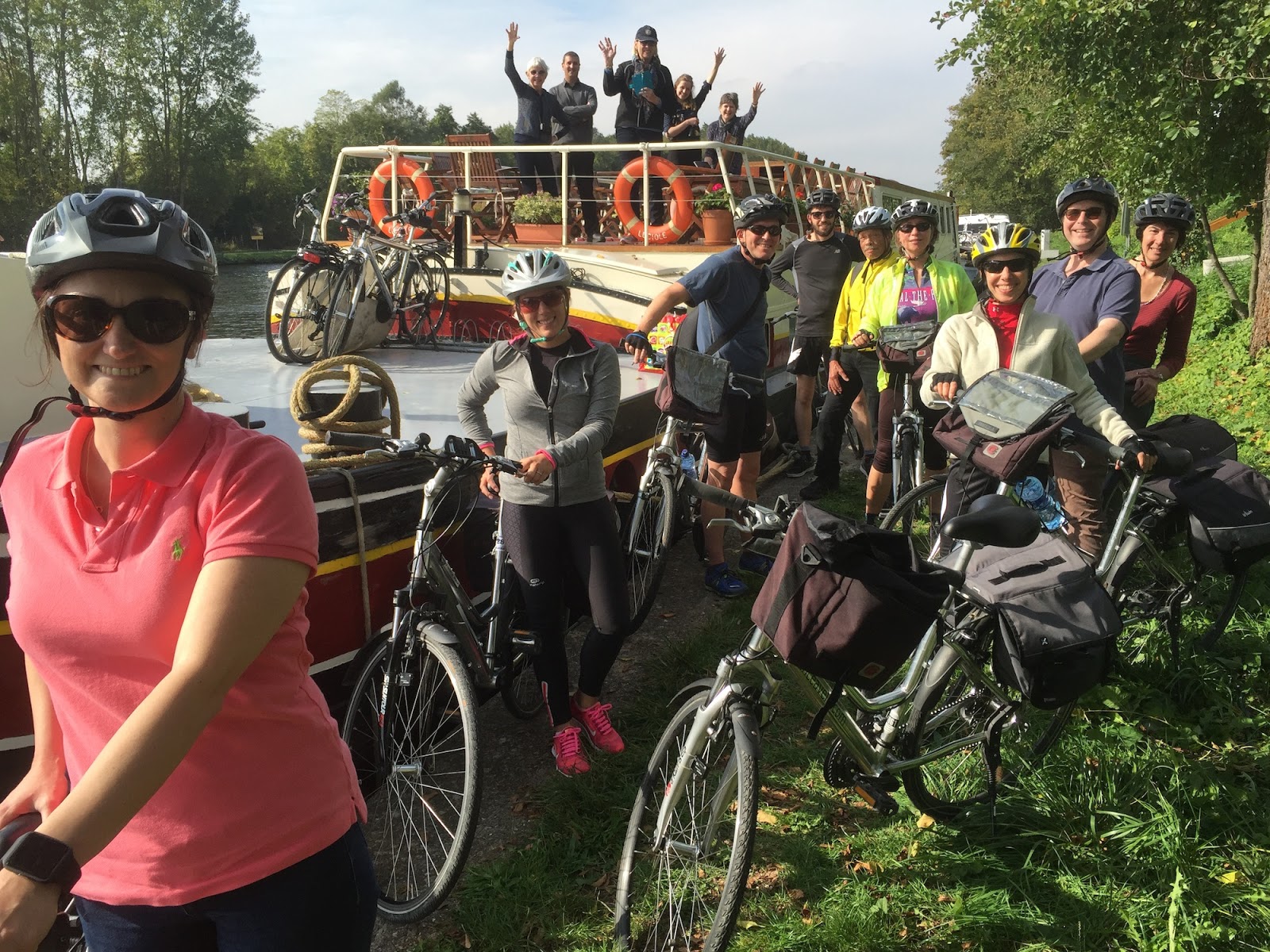 | Smiles in the sunshine on the first day of our Bike and Barge cruise |