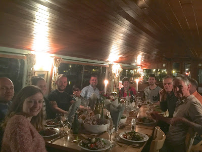 The prize was sitting down to the traditional end of season Merguez Sausage Casserole followed by Apple Crumble (thank you William). It was a birthday celebration night for Vicente, our Captain's lovely son, who is growing up fast, before our eyes.